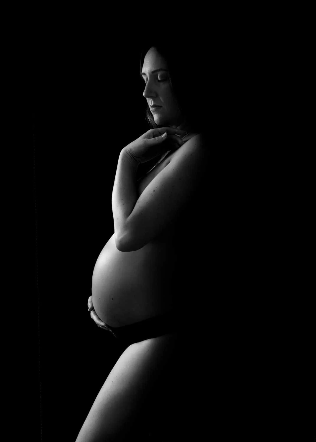 Using dramatic directional lighting, this style sculpts the body to reveal shape, curve, and emotion with extraordinary depth. The result is a fine-art maternity portrait that feels powerful, quiet, and timeless — where nothing is added and nothing is distracted.