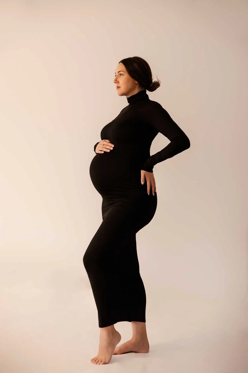 Bold, striking, and undeniably powerful, The Noir Dress is designed to celebrate the strength of the pregnant body in its purest form.